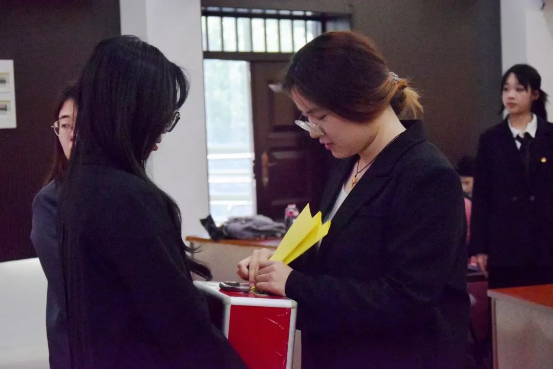 随后大会审议并通过上一届学生会工作报告(草案)以及人文与传播学院学生会章程(草案);以无记名投票形式选举产生第六届学生委员会委员8名,学生会主席团成员3名。
