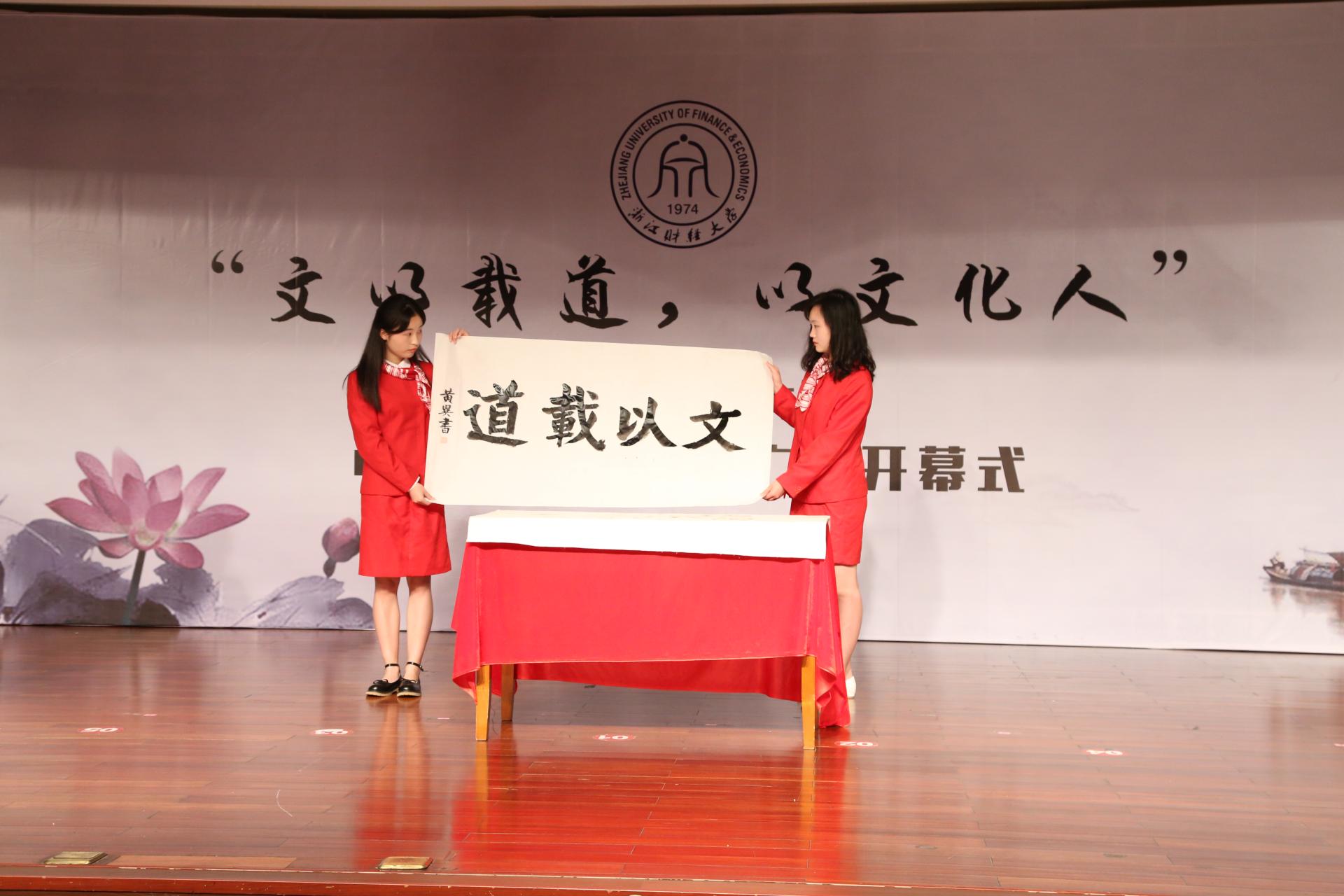 接下来,黄建新副校长为开幕式题词“文以载道”。在“文以载道”这四个字中,黄校长道出了中国传统文化推广的奥妙所在。