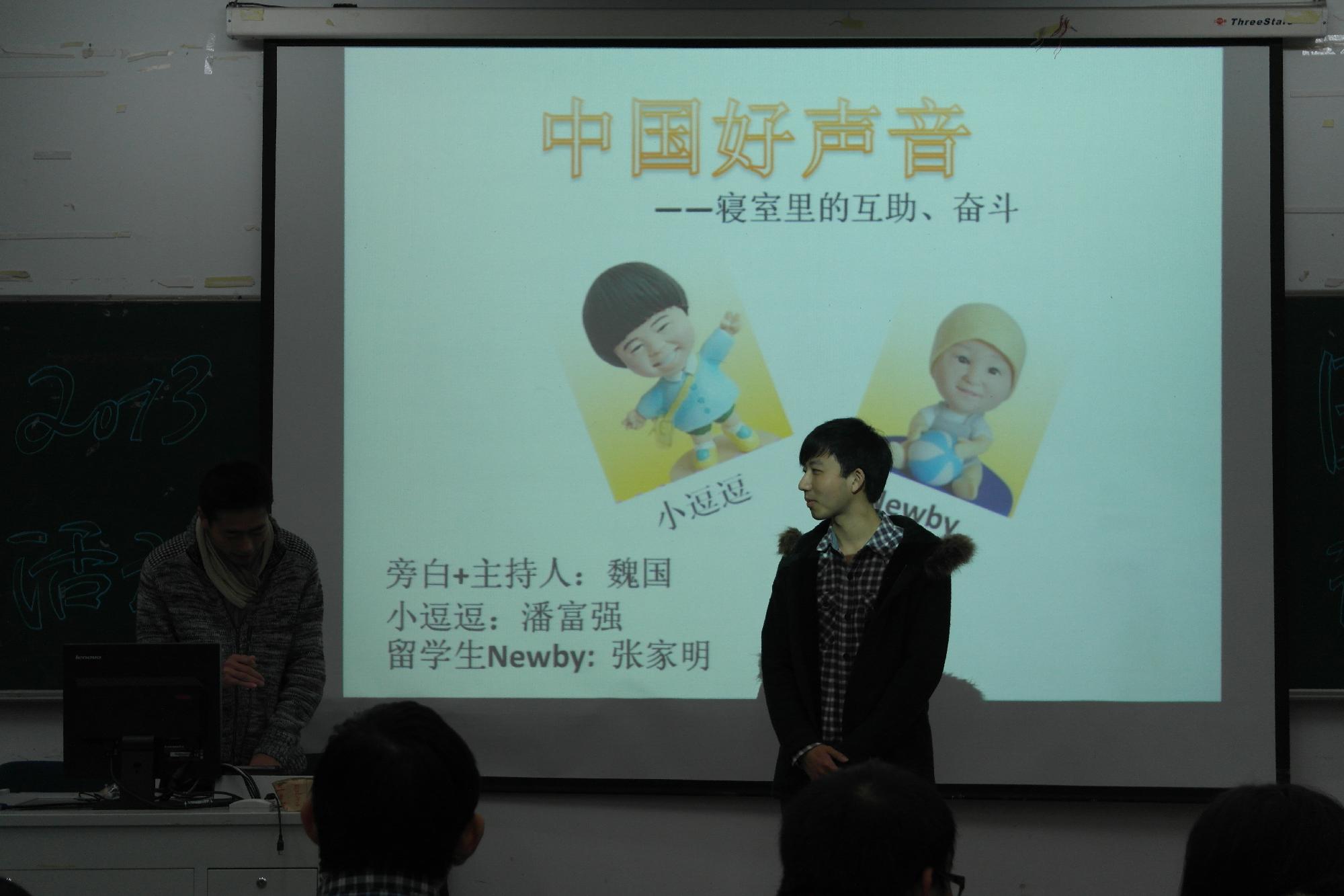 接下来的才艺比拼环节,12广告学一班的短剧《中国好声音》以风趣的表演,逗人的腔调赢得在座学生的一片欢呼。随后,《光阴的故事》、《感恩的心》、《我的未来不是梦》、《你我的约定》······一首首动人的歌曲接连响起,在这个初冬的寒夜温暖着同学们的心灵,燃起了大家的激情,奏响了青春的主旋律。小品、情景剧的表演让在座的领略了别样的韵味。