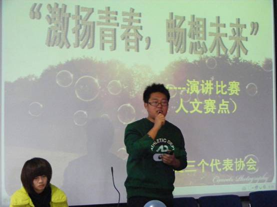 “青春是一首歌,跌宕起伏;青春是一幅画,色彩缤纷;青春是所有人心底最美丽的回忆。”这些对青春如诗如画的描述,有没有唤起你对青春最菁华的记忆?”1212日下午,人文学院在112教室里举行了一场以“激扬青春畅想未来”演讲比赛。大赛邀请到了人文学院学生会副主席周旭明、人文学院三个代表协会负责人顾菊菊等做大赛评委。虽然冬雨让气温下降了好几度,但却没有浇灭同学们参赛观赛的热情。教室里人头攒动,场面热闹非凡。