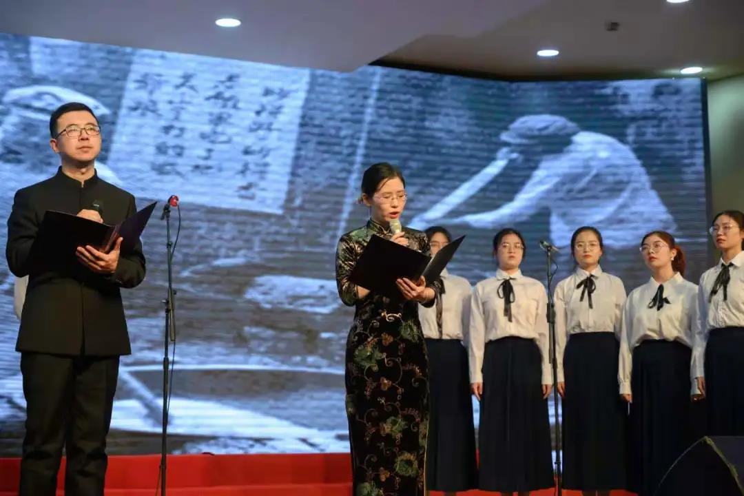 王怀榕老师、王阿蒙老师和崔霞老师与学生共同演绎了诗歌朗诵《青山处处埋忠骨》,由学生郭继作词,毋丹老师古筝独奏。