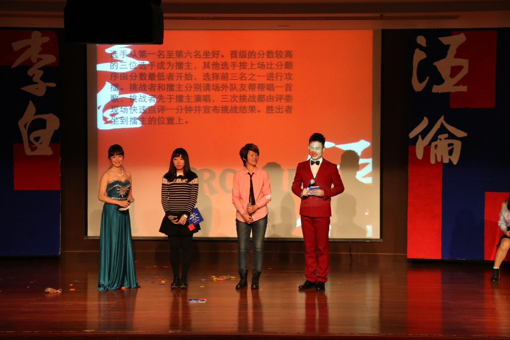 大赛构思新颖独特,全程古典风将“忽闻踏歌”的主题体现地淋漓尽致,更有李白、汪伦齐助阵。走秀环节,选手们半携面具,腰佩古典号牌出场,点燃赛场激情。在第一轮“双剑合璧震云霄”中,选手两两进行演唱,文开玄和郑蓉演唱的《相见不如怀念》旋律悠扬,马洋洋和梅慕雯的《到不了》似乎是在用歌声为我们讲那个忧伤的爱情故事,白龙马组合和徐雯别出心裁地现场观众带来了歌曲串烧,他们别开生面的表演为现场观众献上了一场试听盛宴,得到了场下一致好评。在互动环节-求爆求抱求ball中,观众们热情参与,会场的气氛瞬间被被带动起来。