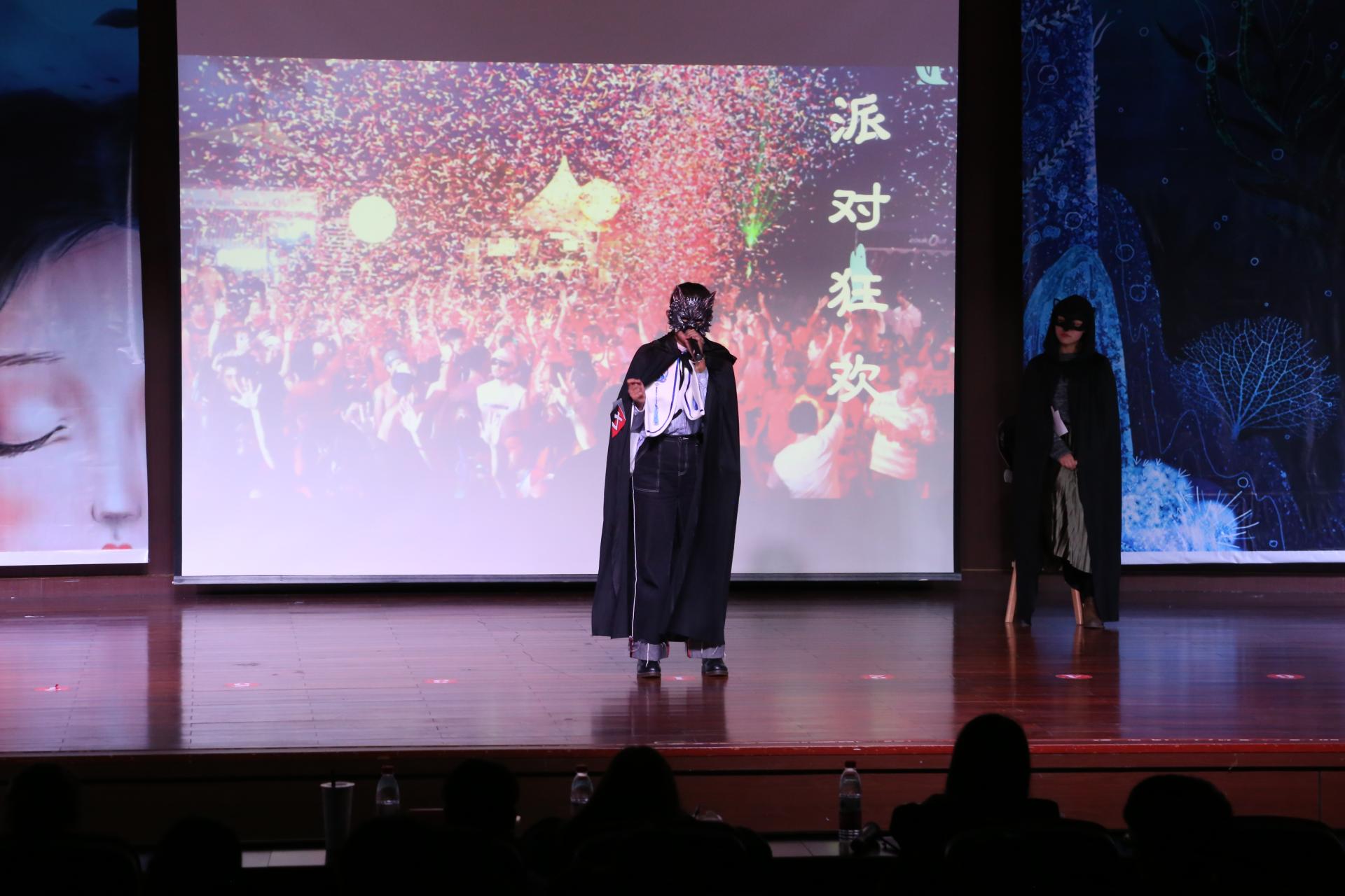 大赛采用“蒙面唱将”的比赛形式,12名参赛选手两两组合,互相搭档登台演唱。他们风格迥异、个性张扬,在灯光绚丽的舞台上为全院师生带来了一场视听盛宴。
