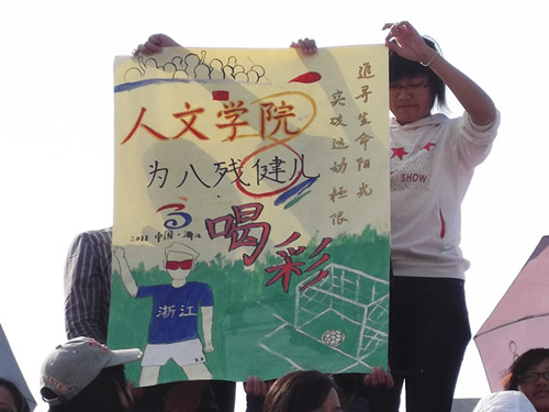 值我校承办中华人民共和国第八届残疾人运动会盲人足球赛落下帷幕之际,1019日早八点,第八届残疾人运动会马拉松比赛在我校正式起跑,人文学院(马克思主义学院)组织了全院学生到场观看比赛,为残疾人运动员们加油助威。