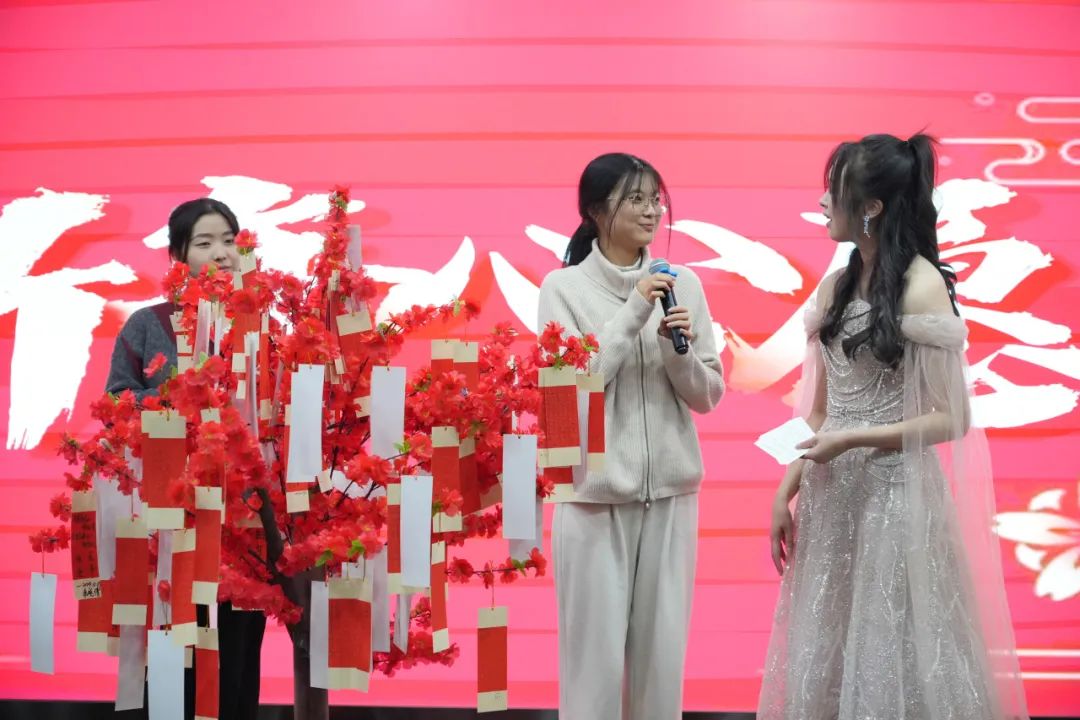 在活动现场,我们精心布置了一棵新年许愿树,上面挂满了同学们对未来的美好憧憬与新年愿望。我们也邀请了部分同学上台和大家一起分享了他们心中那份对未来的无限期许。