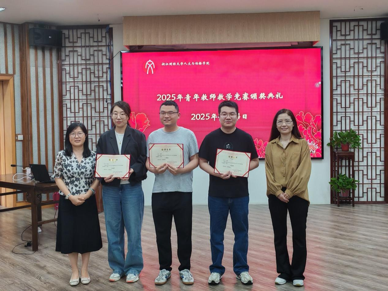 六位参赛教师的授课充分展示了青年教师先进的教育理念和勇于探索的精神,他们清晰的思路、扎实的专业知识、精彩的观点,获得了评委们的一致认可。经过紧张激烈的角逐,虞越溪和郁冲聪老师荣获一等奖,魏阳阳、郝文琦、王彬和季诚浩老师荣获二等奖。