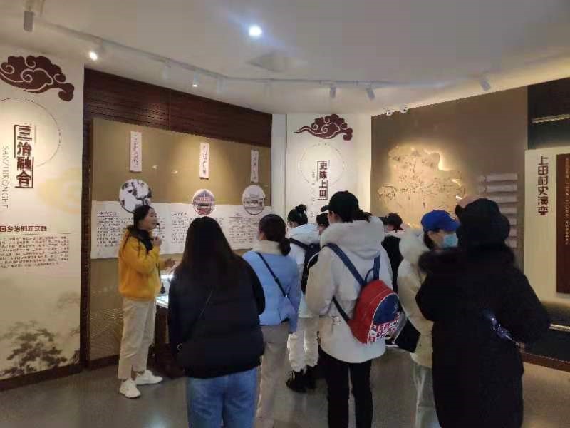 上田村是全国首批“浙江书法村”之一,也是全国民主法治示范村,同学们在导游的带领下参观了具有徽派建筑特色的村史馆、充满墨香的文化礼堂以及颇具现代科技的微法庭等,了解到上田村如何将书法文化、传统武术巧妙地融合在一起,并在村干部的党建引领和村民的共同努力下,探索出一条乡村治理及振兴的新路子,实现了美丽乡村建设。