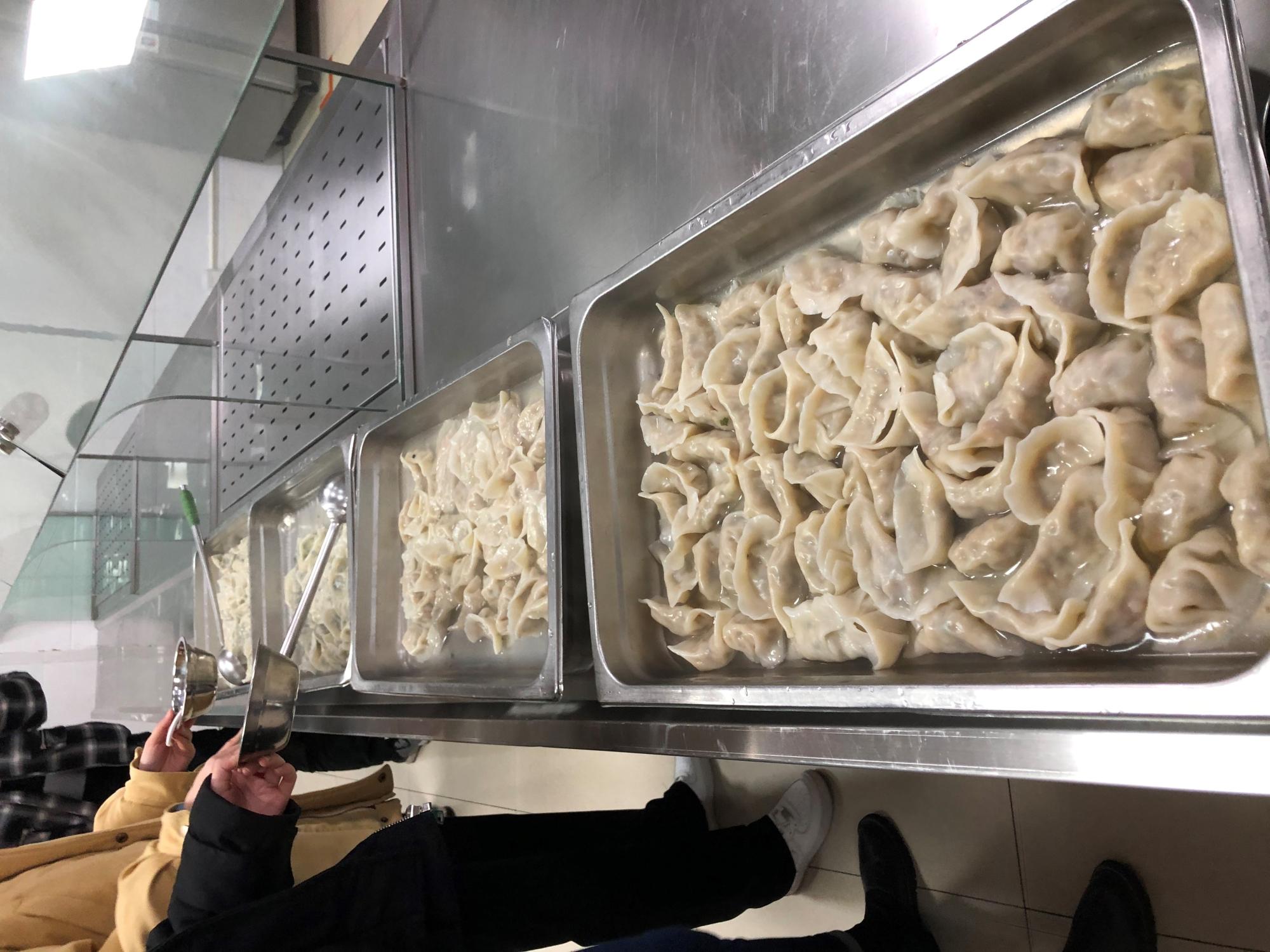 19日上午,负责采买的同学一大早去超市选购包饺子所用食材,在食堂经理与主厨的指导帮助下,同学们分工合作,洗菜、切菜、调馅,大家热情高涨、气氛活跃,围在一起包饺子、煮汤圆。当一盘盘热饺和汤圆上桌的时候, 同学们脸上都洋溢着幸福的笑容。