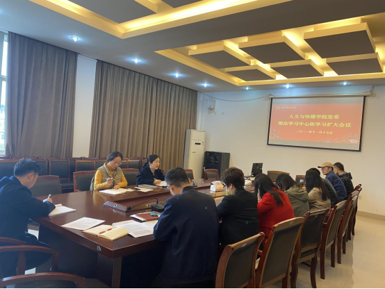 11月17日中午,人文与传播学院党委理论学习中心组在学院楼404会议室召开专题学习扩大会,集中学习党的十九届六中全会精神。学院领导班子成员、党委委员、纪委委员及支部书记参加学习会。学习会由学院党委书记高燕主持。