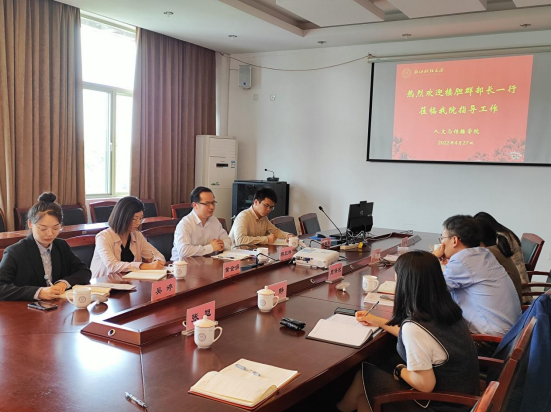 学院院长周保欣介绍了学院基本情况,并就学院未来发展思路和工作重点进行了汇报。学院党委书记高燕汇报了学院党建工作和特色党建品牌建设情况,并就“双带头人”党支部书记工作室运行机制和教职工政治理论学习开展进行了深入交流。副院长陈静、院长助理吴智斌分别就分管工作进行了汇报交流。