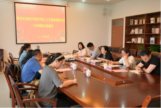 在学科建设、科学研究、“双创”工作、思政品牌建设等方面取得的成绩给予高度评价,并介绍了浙江科技学院人文学院的发展情况,希望能够学习360直播足球