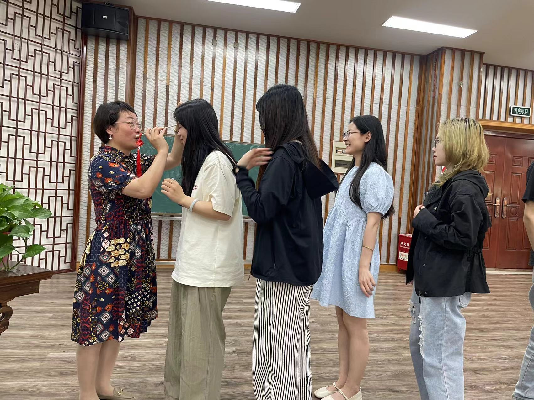 接着,我们进行了传统的朱砂点睛仪式。朱砂象征着祝福和祈福,寄托了人们迎祥纳福、辟邪除灾的愿望。 学院党委书记袁慧兰 为在场的每位党员同学在额头上点上朱砂并送上祝福。