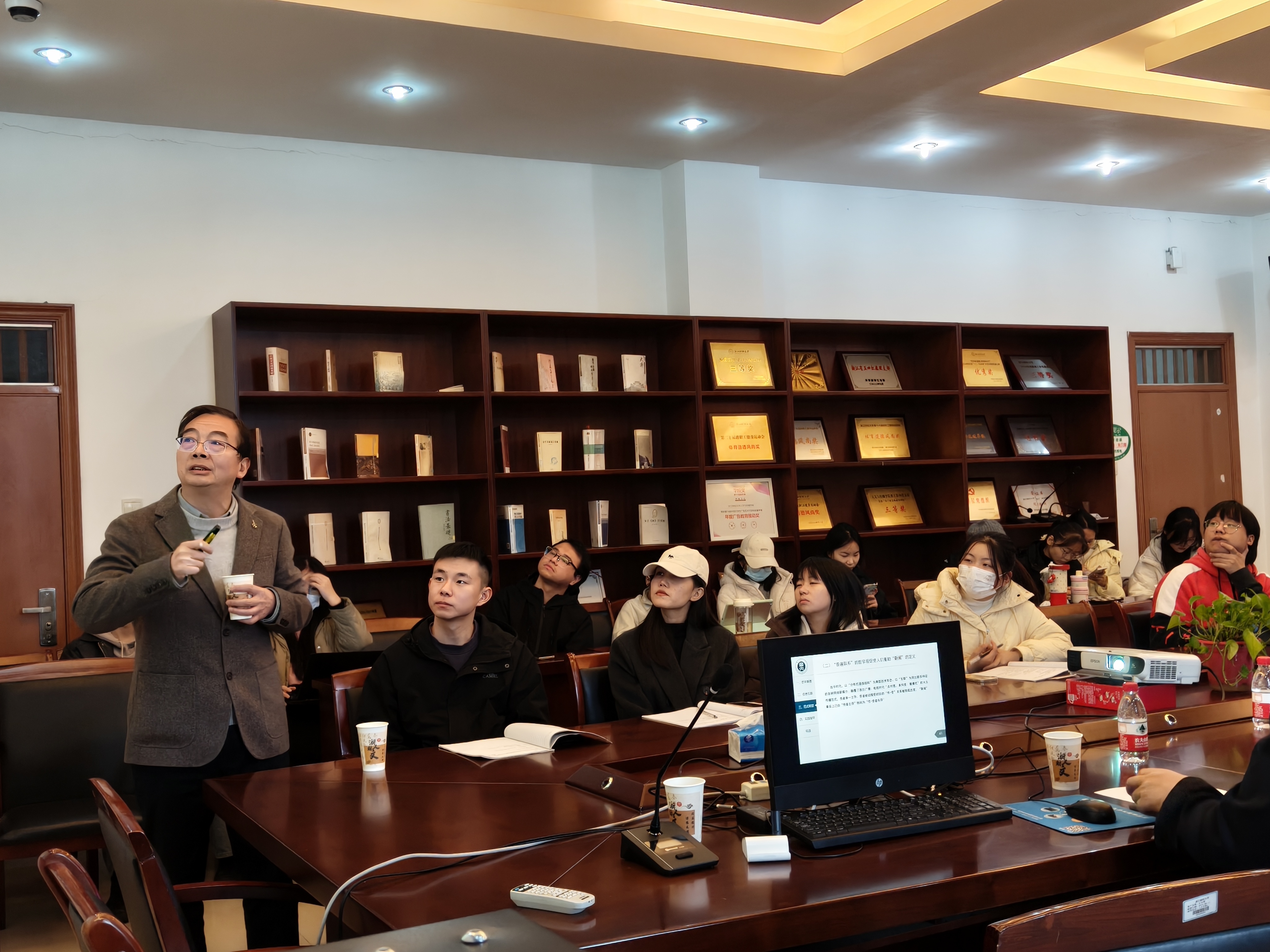 12月6日下午14时,华中师范大学新闻传播学院教授、博士生导师喻发胜应我院邀请在7号学院楼404会议室作题为“普遍联系:马克思主义新闻学的重要哲学基石及其实践价值”的学术讲座。我院胡文财副教授主持讲座,2023级、2024级新闻与传播专业全体硕士生及学院教师到场聆听、学习。