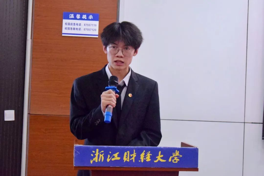 人文与传播学院党委副书记袁慧兰老师发表讲话,她首先对一直以来关心支持我院团学工作的校团委、各兄弟二级学院团委、学生会表示衷心的感谢,并代表学院党委对我院团学组织卓有成效的工作给予充分的肯定。同时,袁慧兰老师对广大青年们提出两点希望和要求:一是希望青年大学生们能够始终坚定理想信念,做志存高远的追梦人;二是鼓励广大青年以“浙财金生”为目标,勤学善思笃行,做本领过硬的奋斗者。最后她呼吁各位代表充分发挥榜样带头作用,积极参与学院建设,为培育具有文明视野和创新精神的人文学子贡献自己的青春力量。