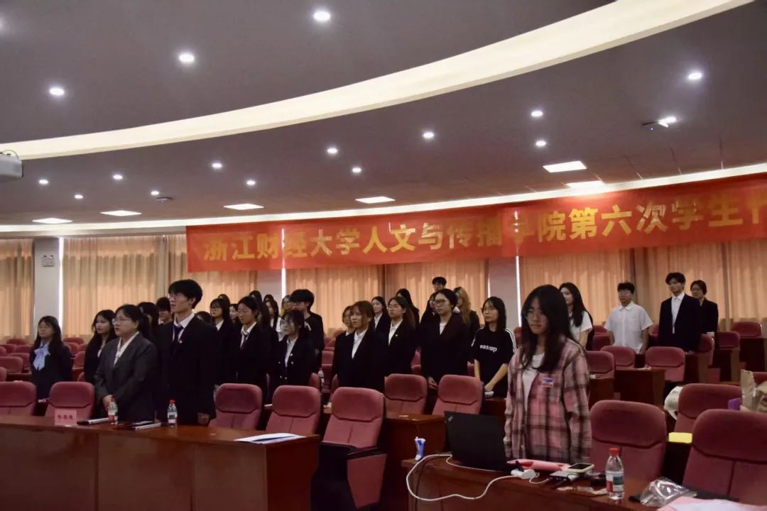 5月27日下午,人文与传播学院第六次学生代表大会于学院楼112报告厅顺利召开。浙江财经大学人文与传播学院党委副书记袁慧兰老师、院团委书记李惠惠老师、校学生会执行主席董若琰、院学生会执行主席王博以及48名学生代表参加大会。信智学院主席团成员周妙思、财税学院主席团成员王非凡、经济学院主席团成员王李沁歆、管理学院主席团成员夏子涵到场祝贺。