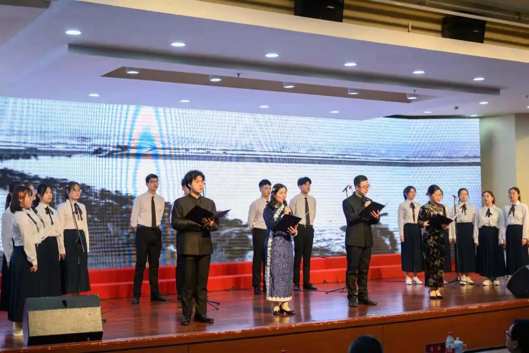 王怀榕老师、王阿蒙老师和崔霞老师与学生共同演绎了诗歌朗诵《青山处处埋忠骨》,由学生郭继作词,毋丹老师古筝独奏。