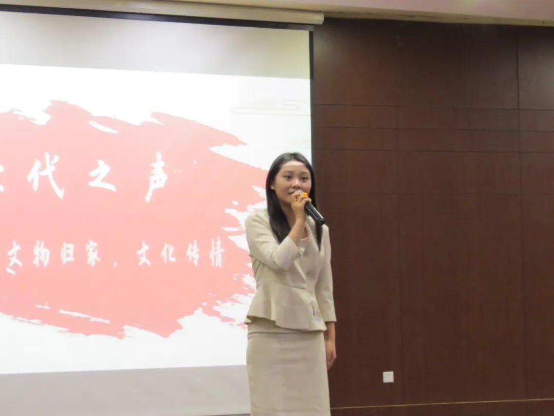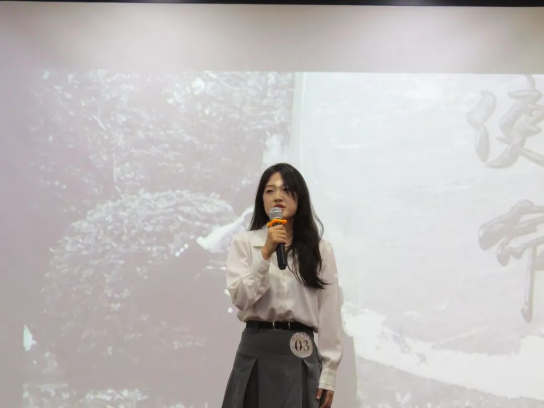 张烁选手演讲的《Z时代之声:文物归家,文化传情》通过对短剧《逃出大英博物馆》剧情的讲述,赞扬了小短剧中的大情怀。她用真挚的情感和高超的诵读技巧,让我们在聆听中领略到了中华文化的无尽韵味和深厚底蕴,也让我们从中领略到青年一代对文化保护和传承的重视。