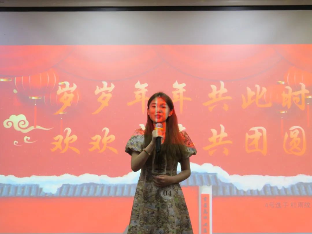 杜雨纹选手带来的是《岁岁年年只此时,欢欢喜喜共团圆》。她用每年春晚的主持人来开场,结合童年回忆,通过人们对春晚态度的今昔对比,抒发出她对春晚意义的思考:凝聚千家万户,情感共鸣。