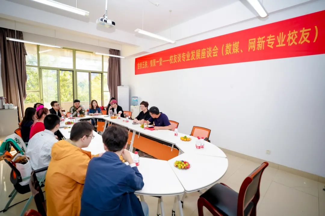 学子在各领域展现着卓越的才华。学院楼内举办了专业发展座谈会,特邀多位杰出校友与专业教师共聚一堂,探讨各专业的现状与未来。会议下设三个分会场,汉语言文学专业、广告学专业、数字媒体艺术与网络与新媒体专业,旨在深度交流与讨论。